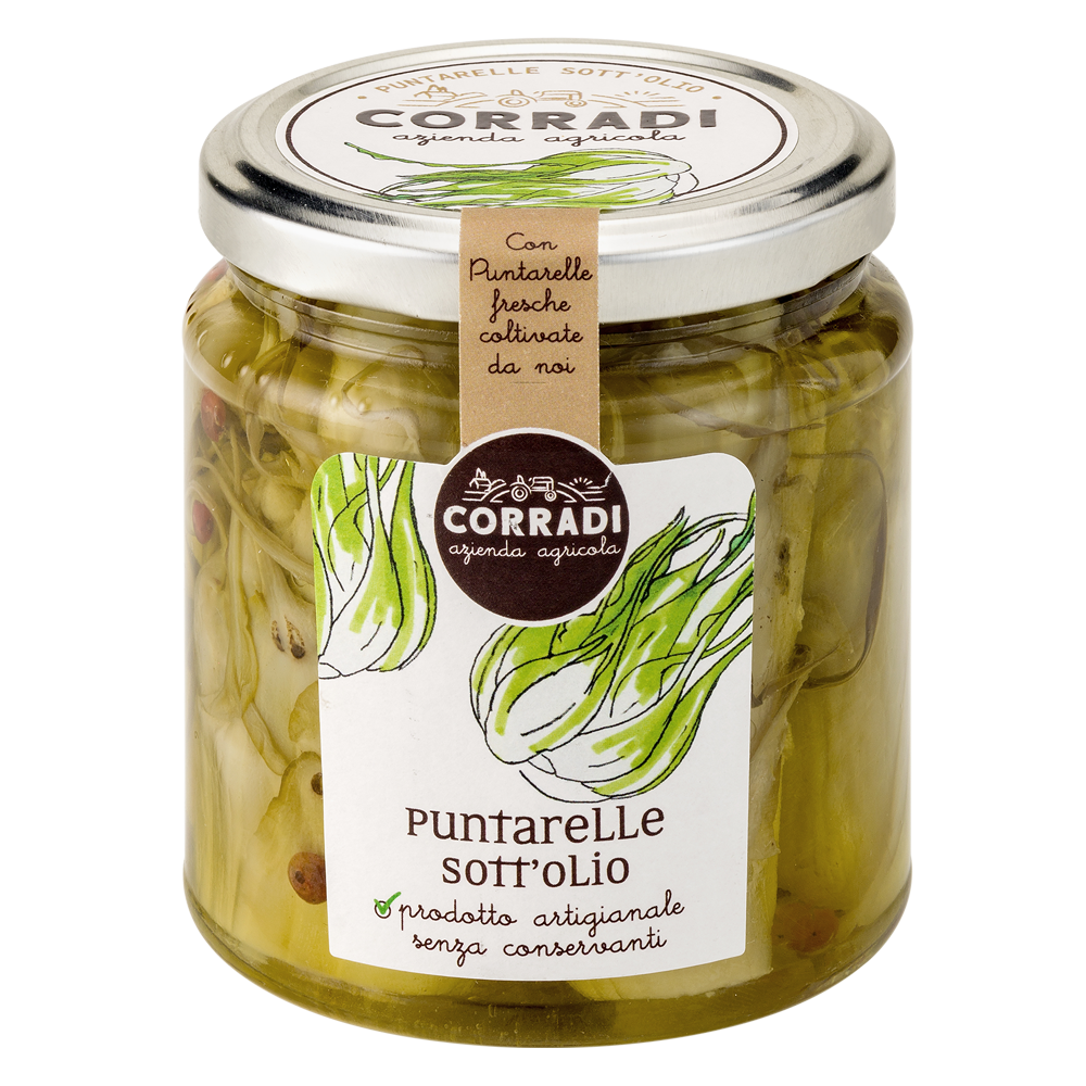 Our puntarelle are manually defoliated to obtain the sprouts of this vegetable. They are then processed and put into pots exclusively by hand, to obtain this wonderful in oil vegetable, made with a few simple ingredients without the addition of spices or artificial flavors.