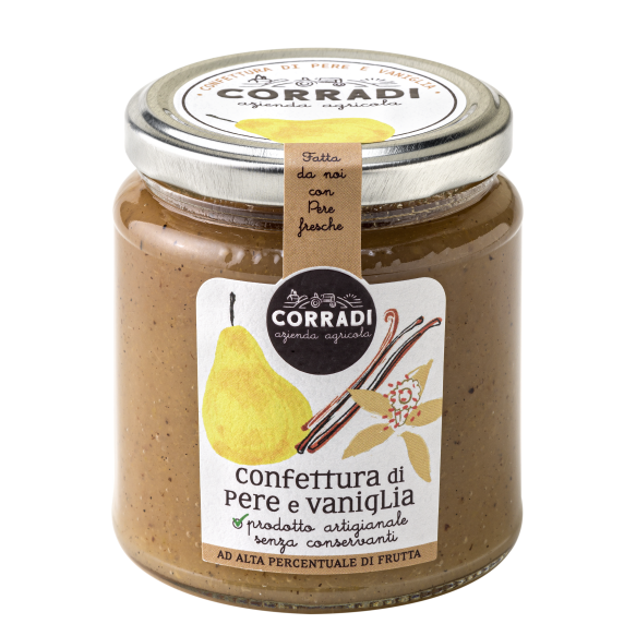 The sweetness of the pear is enhanced even more by the softness of the vanilla. A delicious jam to make every day breakfast precious or to add to sweet recipes.