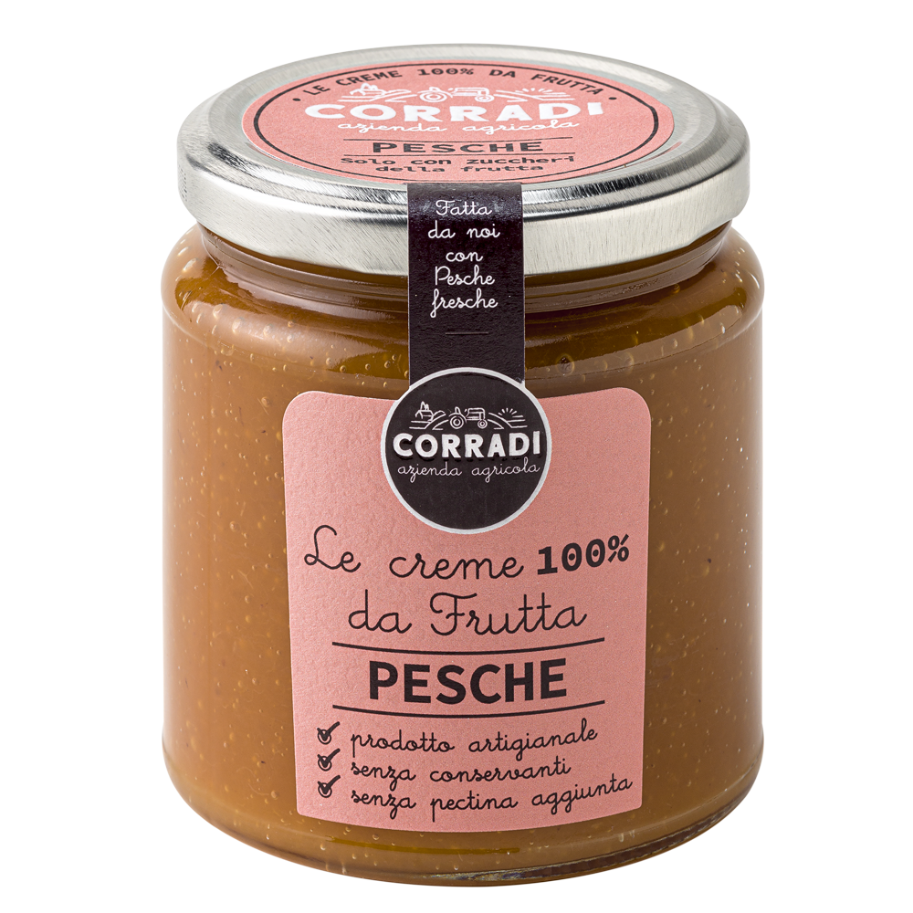 La nostra crema di pesche vi conquisterà fin dal primo cucchiaino perché racchiude tutto l’aroma e i profumi delle pesche fresche maturate al sole estivo.