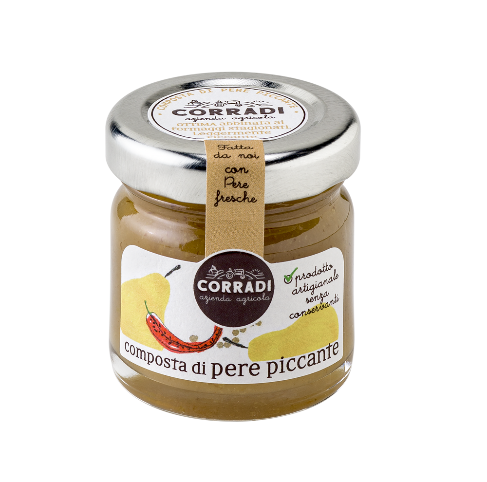 Pere, zucchero di canna, succo di limone, peperoncino, essenza di senape.