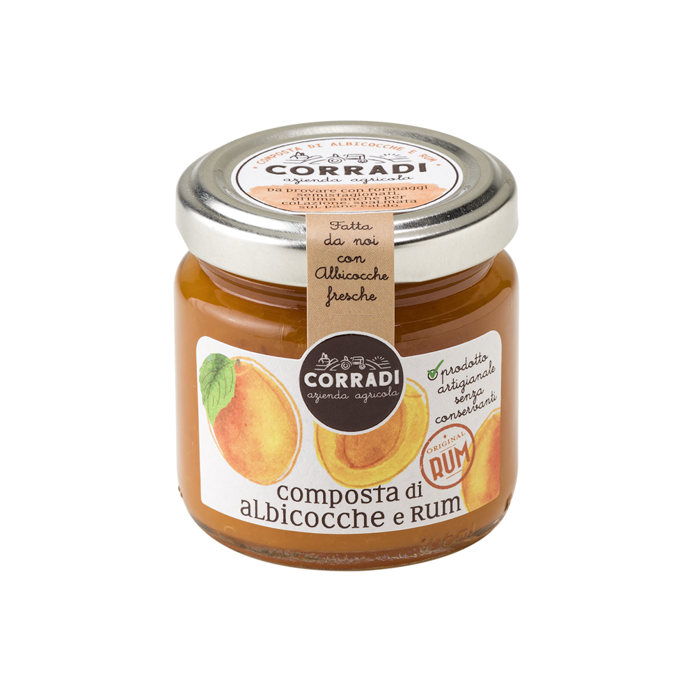 Una ricetta nuova, golosa e raffinata, che unisce il gusto estivo delle albicocche fresche dei nostri frutteti della Basilicata, maturate al sole, alle note ambrate del rum: perfetta insieme ai formaggi semi-stagionati, si addice anche per essere protagonista di colazioni o brunch, spalmata su fette di pane caldo o sui pancake.