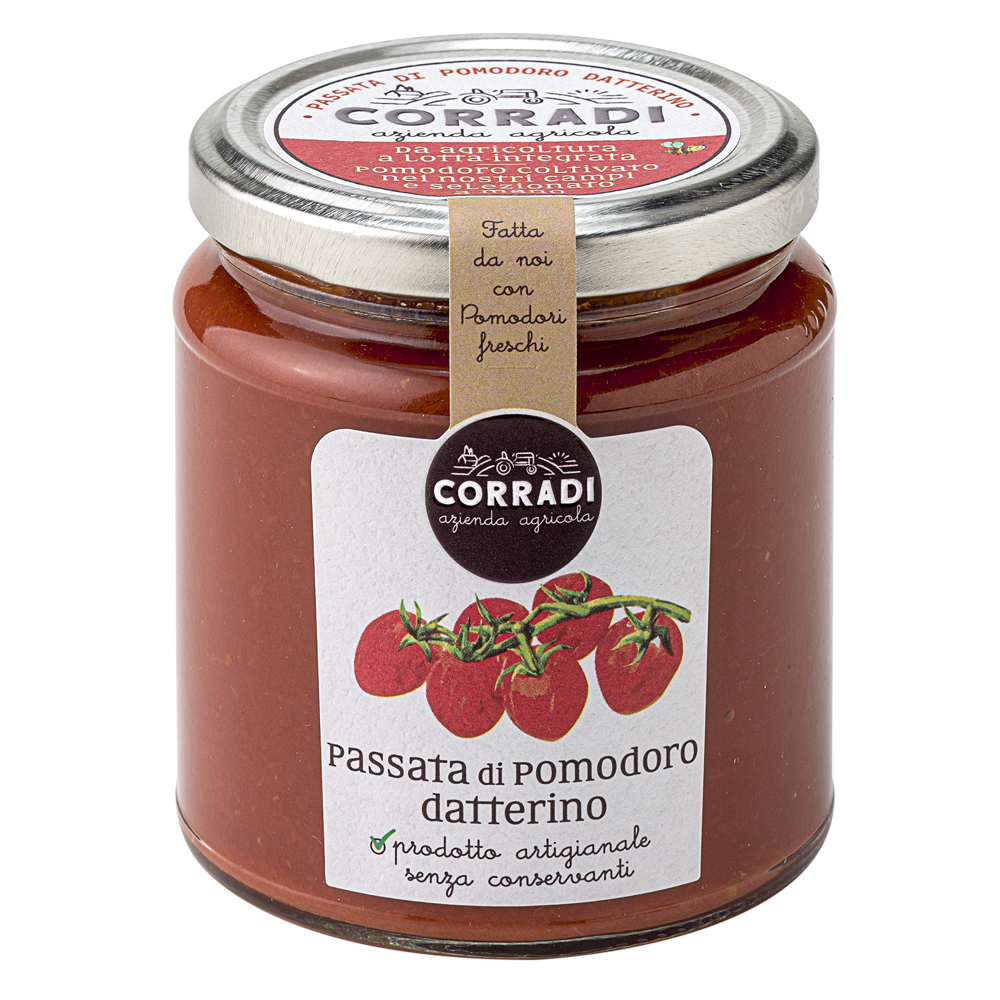 La nostra passata di datterino è frutto di una filiera corta, controllata e garantita: dalla semina alla raccolta fino al laboratorio di trasformazione, per una passata genuina e sana fatta solo con datterini freschi dei nostri campi.